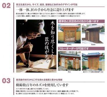 使用素材は高級数奇屋門の証であるネズコ材の最上級のものを