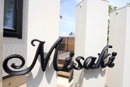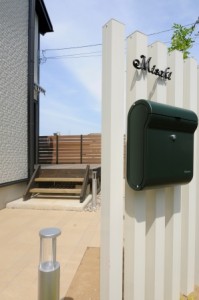 2013/03/28福井 福井市 表札 ディーズガーデン リバーフォレスト テルです★ 今日はディーズガーデンの表札 『ディーズサイン鋳物コレクション』をご紹介します。 この表札は、アルミを素材にした表札ですので 鉄のように錆びたりすることがなくメンテナンスがいりません。 中でも「A-07」は立体感があり、 文字のディテールにこだわったエレガントな鋳物表札となっています。 錆びないという特徴を生かして、 敢えて白いデザイン柱に黒い表札をチョイスしました。 なかなか格好よく仕上がったと思いませんかぁ!