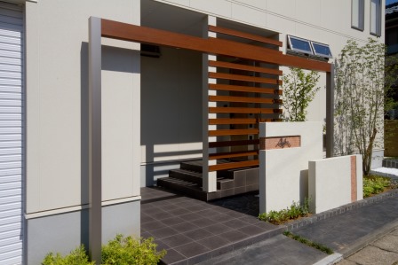 2014/03/31福井 鯖江市 外構工事 和モダン リバーフォレスト テルです☆ 今日ご紹介するのは、鯖江市のA様邸です。 「少しのリフォームで建物の印象を変えたい。」 「狭い玄関周りをオシャレにしたい。」とのご依頼ででした。 入口に白い壁のモニュメントを重ねることで、 立体感を出し奥行きのある空間にしました。 また、玄関横のフェンスに、木調のアルミを使うことで 圧迫感なくプライバシーに配慮した作りにしました。 見どころ盛りだくさんのA様邸。 来週もお楽しみに!!