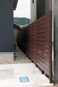 建物の左右には目隠しの為のビーウッドフェンスを設置しました。