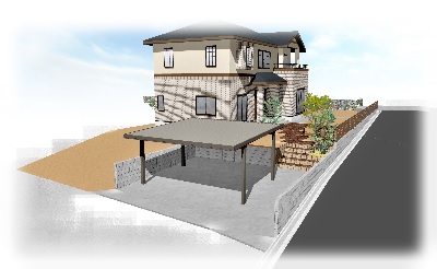 福井 LIXIL カーポート デザインコンクリート ナチュラル 外構 目隠しフェンス
