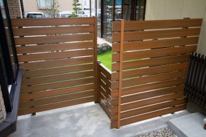 また、母屋と新居の間は 木調目隠しフェンスビーウッドフェンス を付けました。