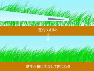 一気に短く刈ると、軸刈りになってしまい緑がなくなり緑の芝生に戻すのに