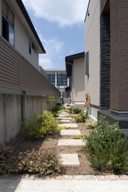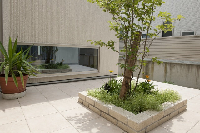 2014/10/15花壇 庭 施工事例 福井市 リバーフォレスト タイルテラス レンガ リバーフォレストのきむです。 今回は福井市のk様邸最後のご紹介です。 では早速イメージパースのご紹介です。 そしてこちらが実際の施工写真です\(◎o◎)/ 玄関横にブロンテペイバーで飛び石を設けた庭を造りました。 多彩なグリーンが年中楽しめそうですね。 庭を抜けるとタイルテラスのプライベート空間が広がります。 その真ん中にはレンガの花壇を設けました。 そしてこちらが全体の写真です。 緑いっぱいの素敵なお庭ですね(^^♪