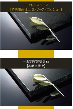 天然石の黒御影石に特殊な表面仕上げを施し、天然石材の良さをナチュラルに引き出した、
