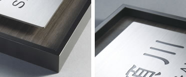 この表札はナチュラルな木調にシャープなステンレスを合わせた