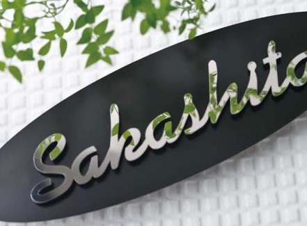 流れるような書体+モダンカラーのバックプレートがスタイリッシュ