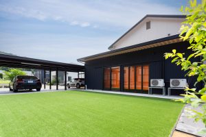 趣味の部屋 人工芝 ハイデザインのカーポート ライトアップ