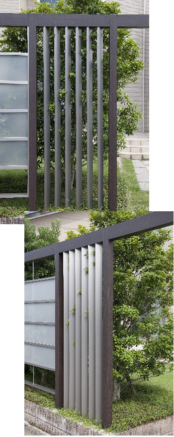 縦格子は角度をつけて取り付けてあるので、みる方向によっては目隠しになります。\(◎o◎)/!