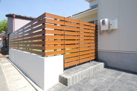 鯖江市 外構工事 おしゃれな 木調フェンス
