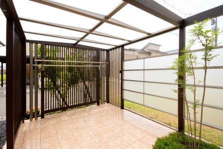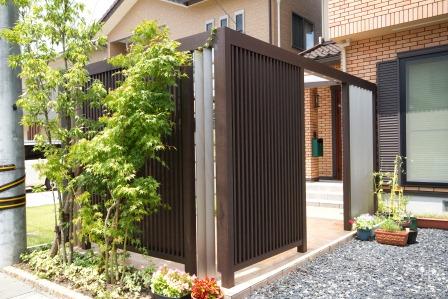 2013/01/22鯖江市 高級感のある目隠し +G こんにちは、まきです。 今日は鯖江市にあるT様邸のご紹介です。 高級感のある目隠しをご希望のでしたので、 TOEXの+Gを施工させて頂きました。 正面に、+G Gスクリーンの縦格子とデザイン格子で目隠し 中にお洗濯を干しても外からは見えません!! 側面にはGスクリーンの横格子タイプで視線をカットしつつ明かりも取り込めます。 HPにはたくさんの施工事例をUPしていますので、 リバーフォレストHPご覧ください!!