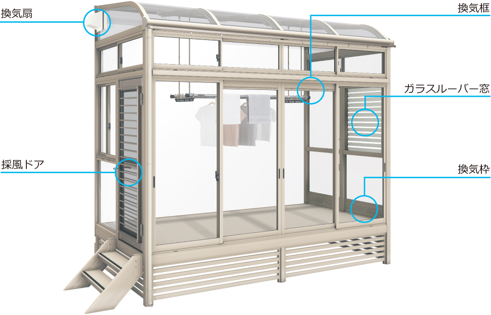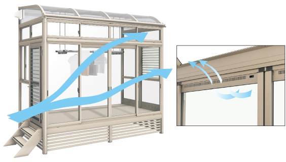 従来の商品よりも通風・換気機能を強化しており、快適なランドリー空間が特徴的です。