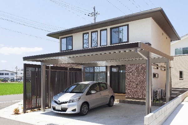 +G 折板カーポート シンプルな 新築外構 目隠し