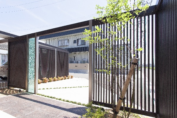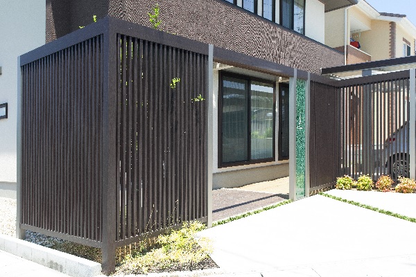 LIXIL の +G フレームと目隠しのため縦格子を使用。