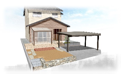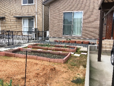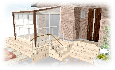 お庭側からだけでなく、玄関側からも直接テラスへあがれる階段も作成します(^^♪