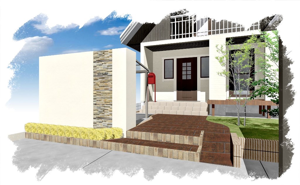 アクセントのタイルの色は違いますが、スロープやポストなど