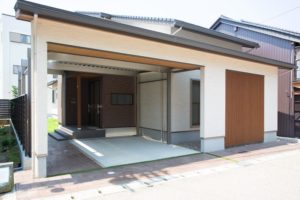建物正面の吹き抜け部分にカーポートを設置しました。