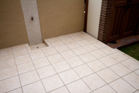カンナの奥に見えるのが、タイルテラスです。