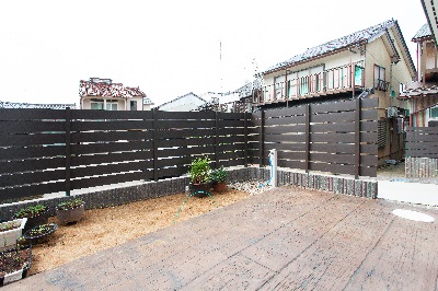 坂井市 外構 お庭 テラス マットスタンプ Bウッドフェンス トータル外構