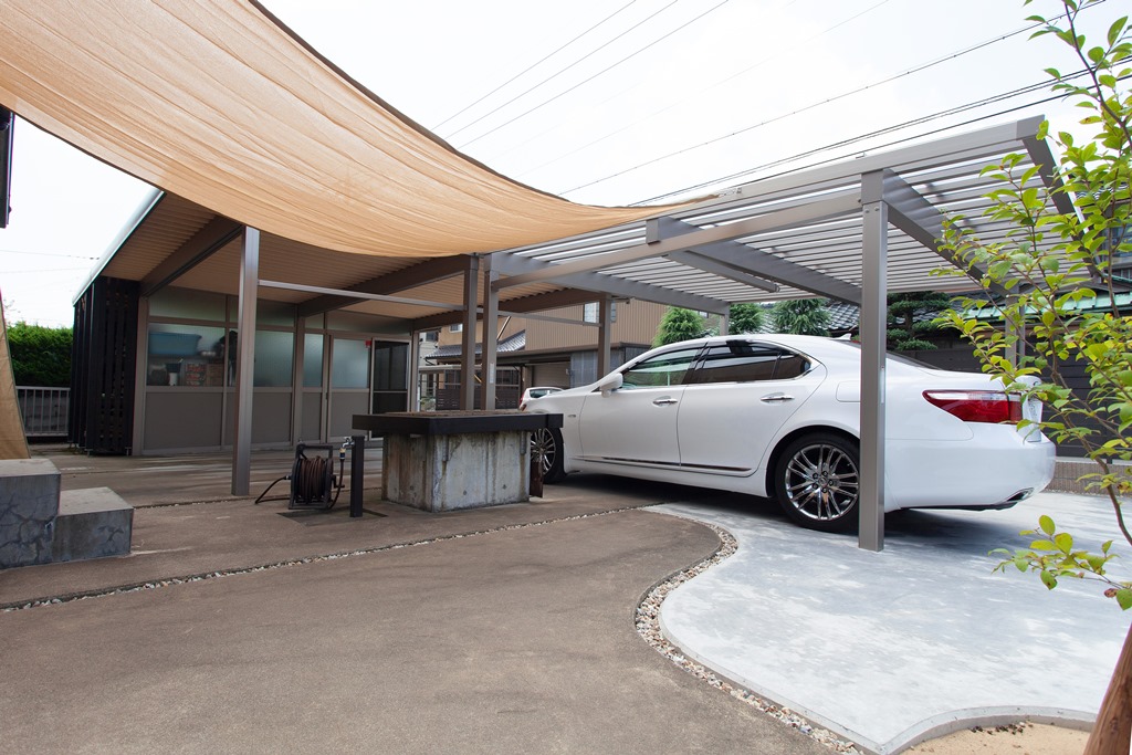 明るいカーポートの下で楽しくBBQする姿が想像できますね。