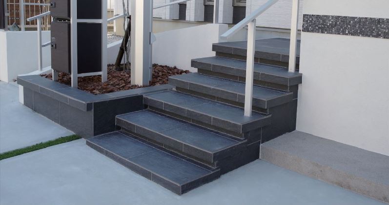 「ケコミ」はタイル張り蹴込階段用コンクリート製下地ブロック。