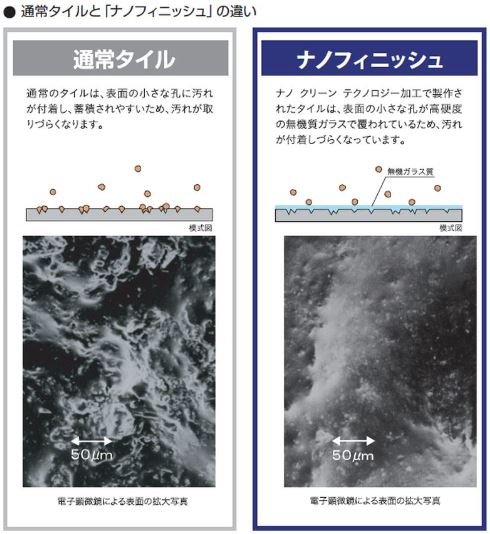 このタイル、ナノクリーンテクノロジーとかいう加工がされていて、