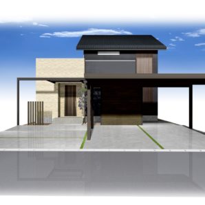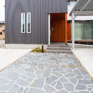 おしゃれな アプローチ 石貼り 新築外構 カーポート