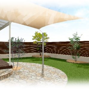 外構 リフォーム お庭 おしゃれな 石貼り 目隠しフェンス