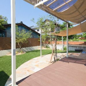 福井 外構 タイル カーポート 人工芝 エクステリア フェン...