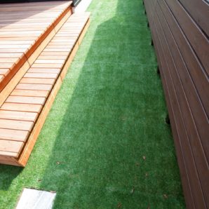 アプローチ 自然石貼り 人工芝 おしゃれな 新築外構