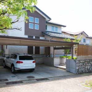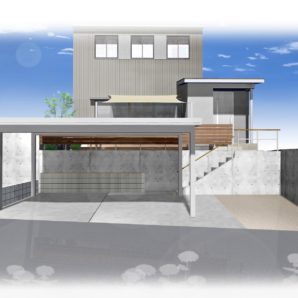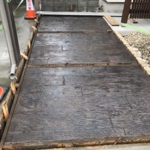 新築外構 マットスタンプ 折板カーポート モニュメント 木彫