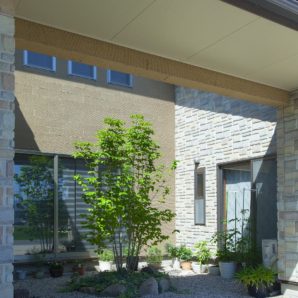 折板カーポート アプローチ マットスタンプ シンプル 新築外...