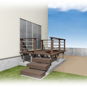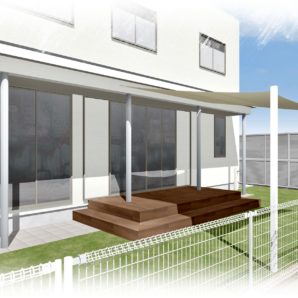 吉田郡 外構リフォーム 人工芝 シェード タイルテラス