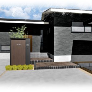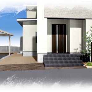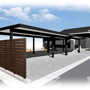 坂井市 新築外構 折板カーポート モニュメント マットスタン...