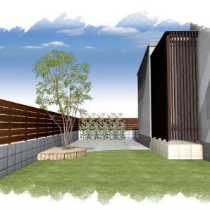 外構 エクステリア 目隠しフェンス 庭 人工芝 福井