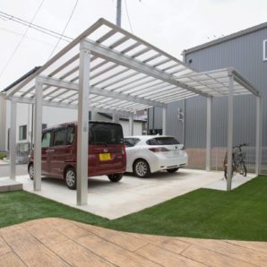 カーポート 外構 人工芝 スタンプコンクリート テラス