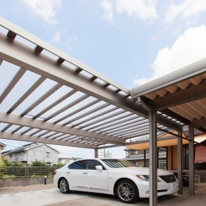 福井市 フェンス 木調 折板カーポート イナバ バイク保管庫...
