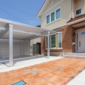 スタンプコンクリート テラス屋根 実用的な おしゃれ 外構