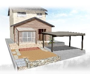 福井市 木調フェンス 折板カーポート 物置 モニュメント デ...