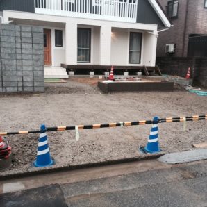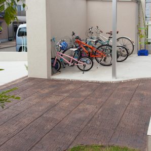 福井市 新築外構 おしゃれな駐輪場 マットスタンプ ウィンス...