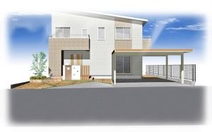 福井 デザインコンクリート 折板カーポート 芝 植栽 モニュ...