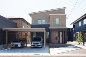 福井 折板カーポート デザインコンクリート モニュメント ガ...
