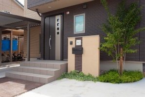 福井市 新築外構 マットスタンプ 埋め込みポスト 塗り壁モニ...