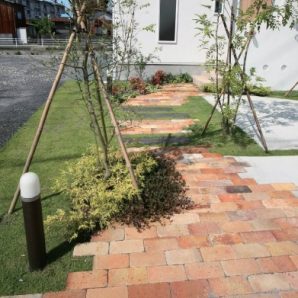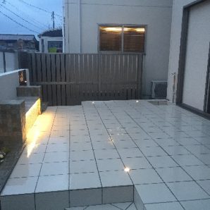 お庭 リフォーム 福井 外構 人工芝 タイルテラス ライトア...