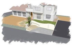 福井市 塗り壁 モニュメント 洗い出し レンガ 手すり 福井