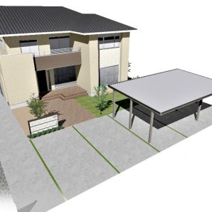 外構 ナチュラル 高低差 折板カーポート 目隠しフェンス デ...