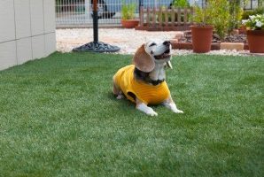メッシュフェンス 芝生 タイルテラス わんちゃん スロープ ...