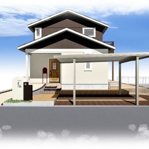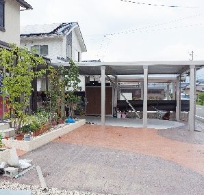 福井 外構 リフォーム テラス屋根 境界 塗り壁 デザイン