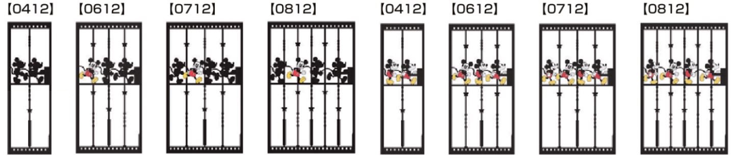 ミッキーのA型B型C型、プーさんのA型B型を親子開きや両開きに組み合わせて。