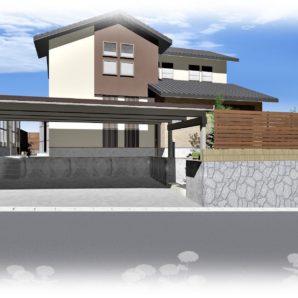 福井 デザインコンクリート 木調フェンス シェード 植栽 外...
